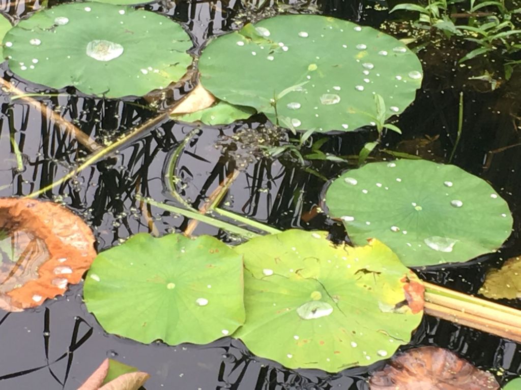 dragonflies dancing on the water.
