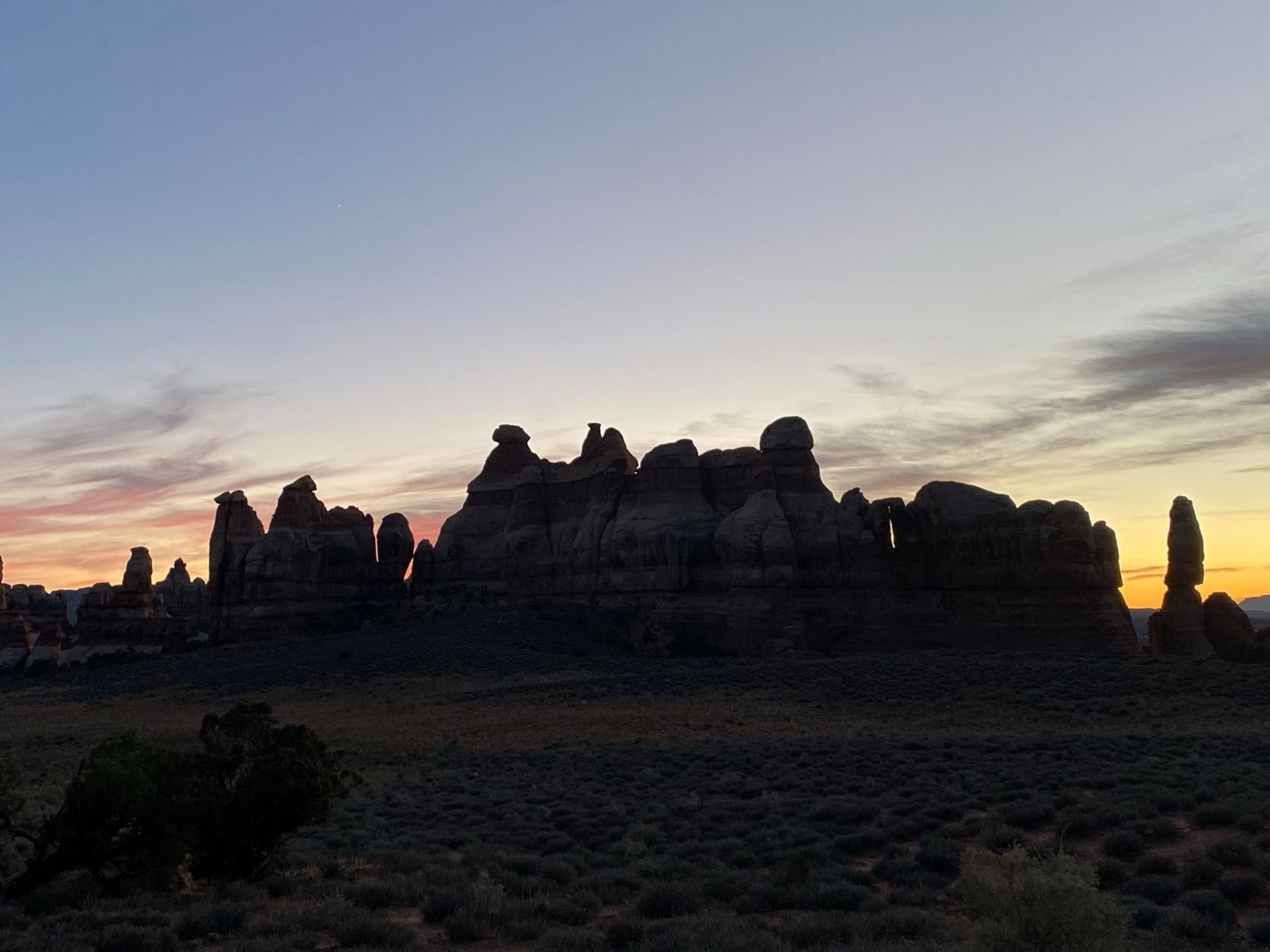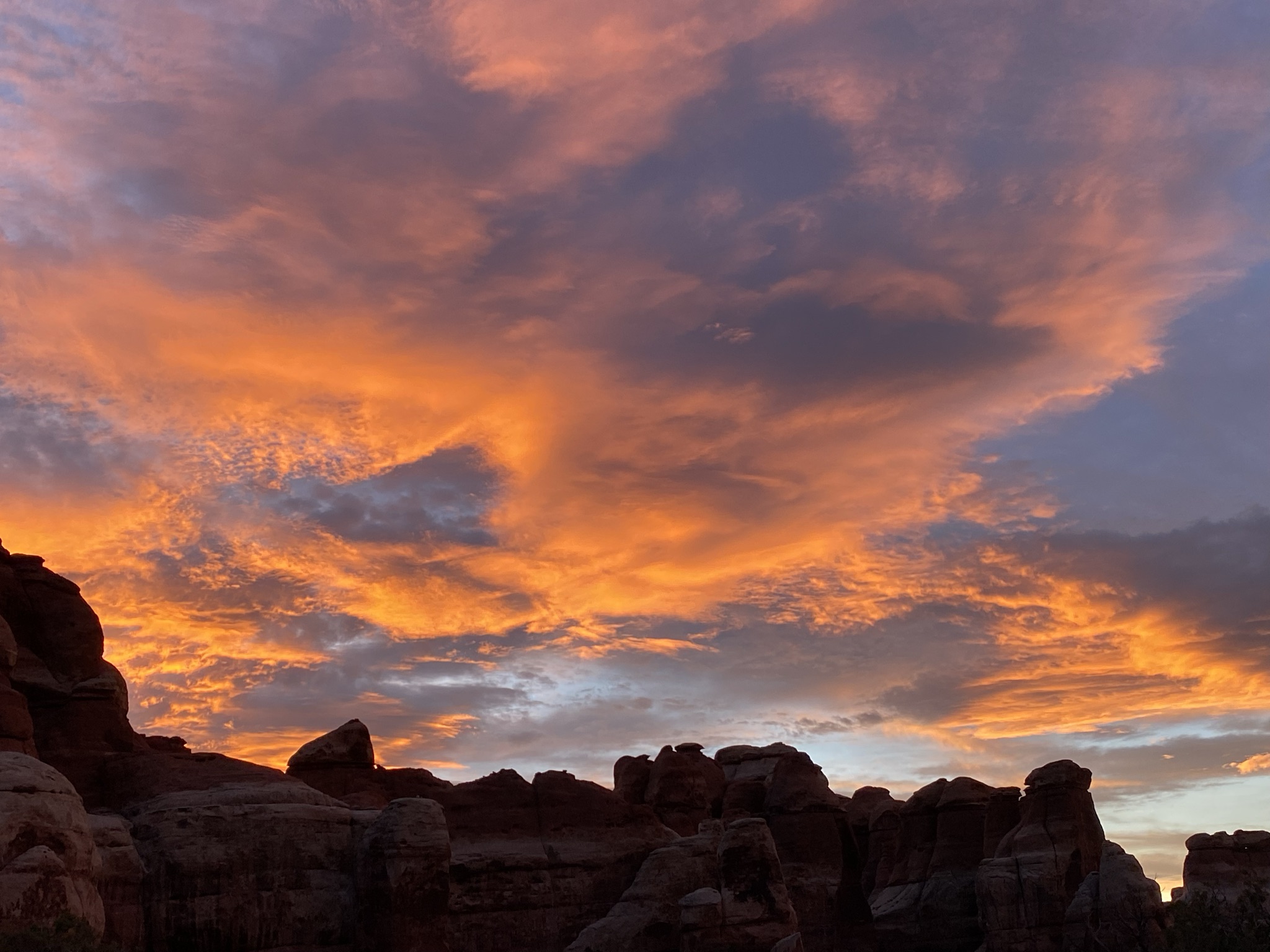 Here’s some pictures from a solo sojourn to Canyonlands National Park this past week. The brilliant light and unearthly colors speak for themselves. What doesn’t appear, what you’ll have to imagine, is the silence. These were three of the quietest nights of my life…not a wisp of wind, nor a cricket or a night bird or a human voice or an engine of any kind. The sound of my breathing, or my sipping a hot drink, was immensely loud. As I lay on my back in the tent, there was a vibration, a faint humming sound in my ears, seemingly amplified by the rocks. The music of the spheres? The electromagnetic force field? The sound of my own machinery? Who knows? (Turns out I’m not the only one to report this sound.) As if all this weren’t stimulation enough, there was the moon, just past full, casting dramatic shadows throughout the wilderness of rock, shifting every time I closed and opened my eyes… A night, in short, too vast for sleep.