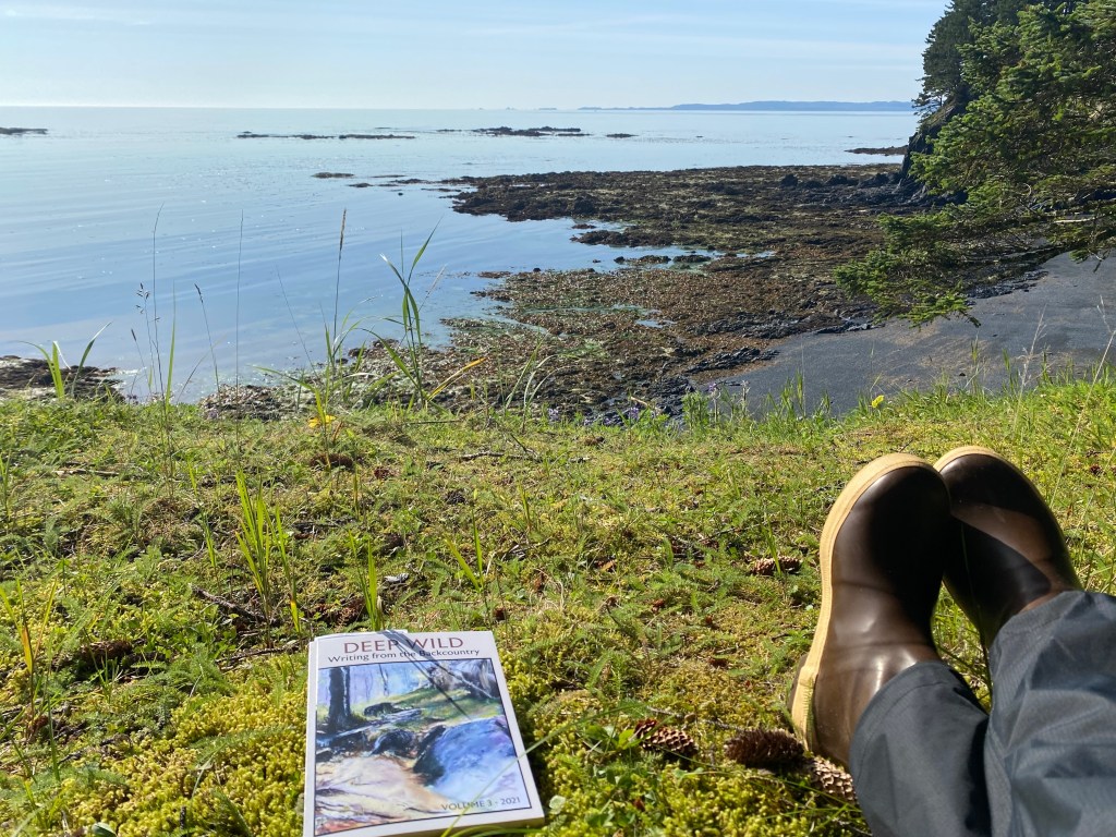 Marybeth Holleman shares her pic of Deep Wild 2021 as she enjoys great views and great reading with her paddling partner, Carol Hult, on a kayaking trip in the Kodiak Archipelago.