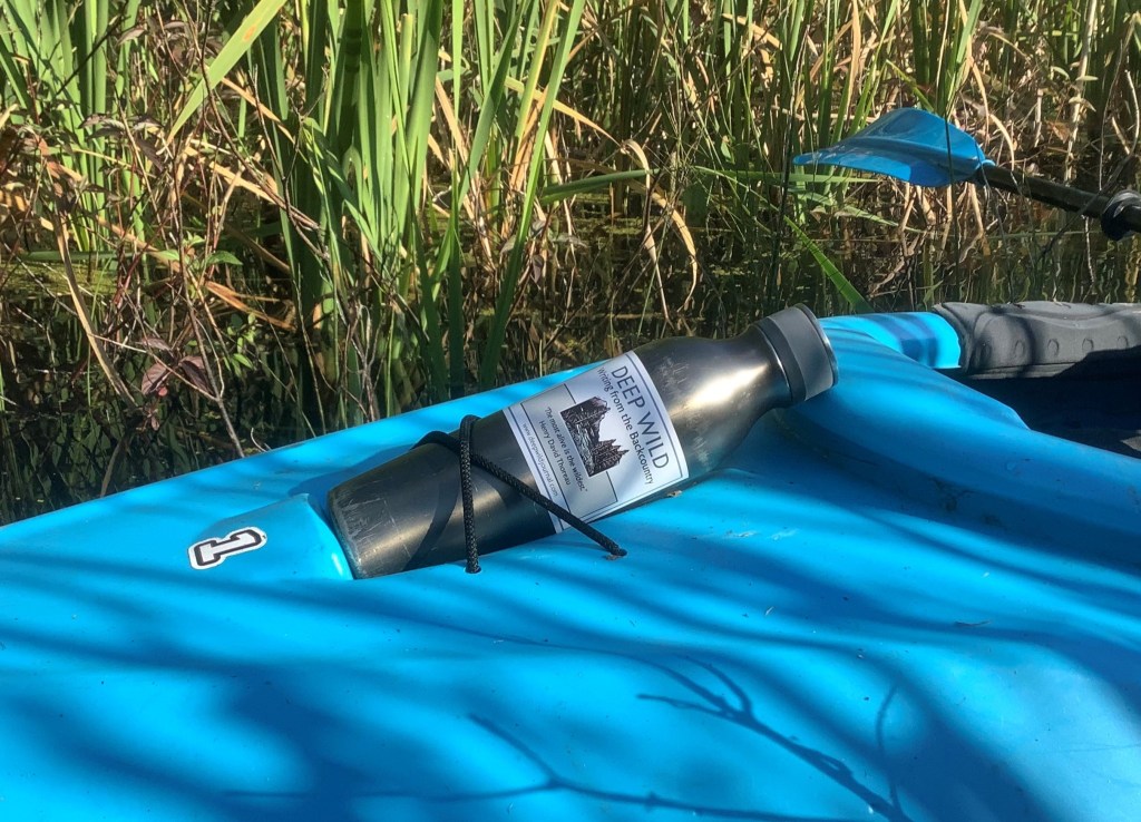 Dian Parker Tom Parker sports his Deep Wild Journal water bottle in the wilds of Vermont, in Dian Parker’s entry to the Deep Wild in the Wild Photo Contest.