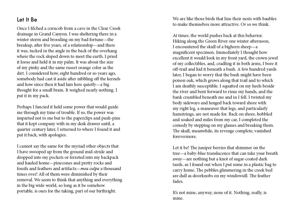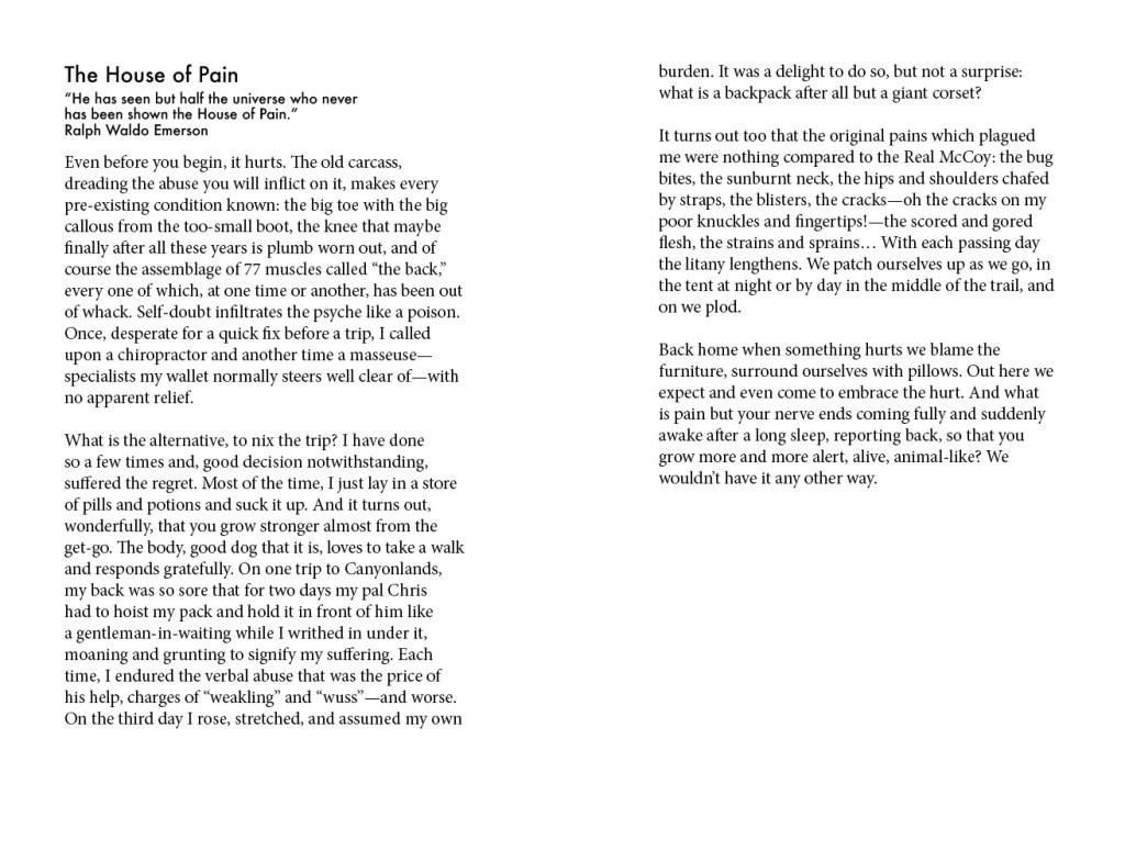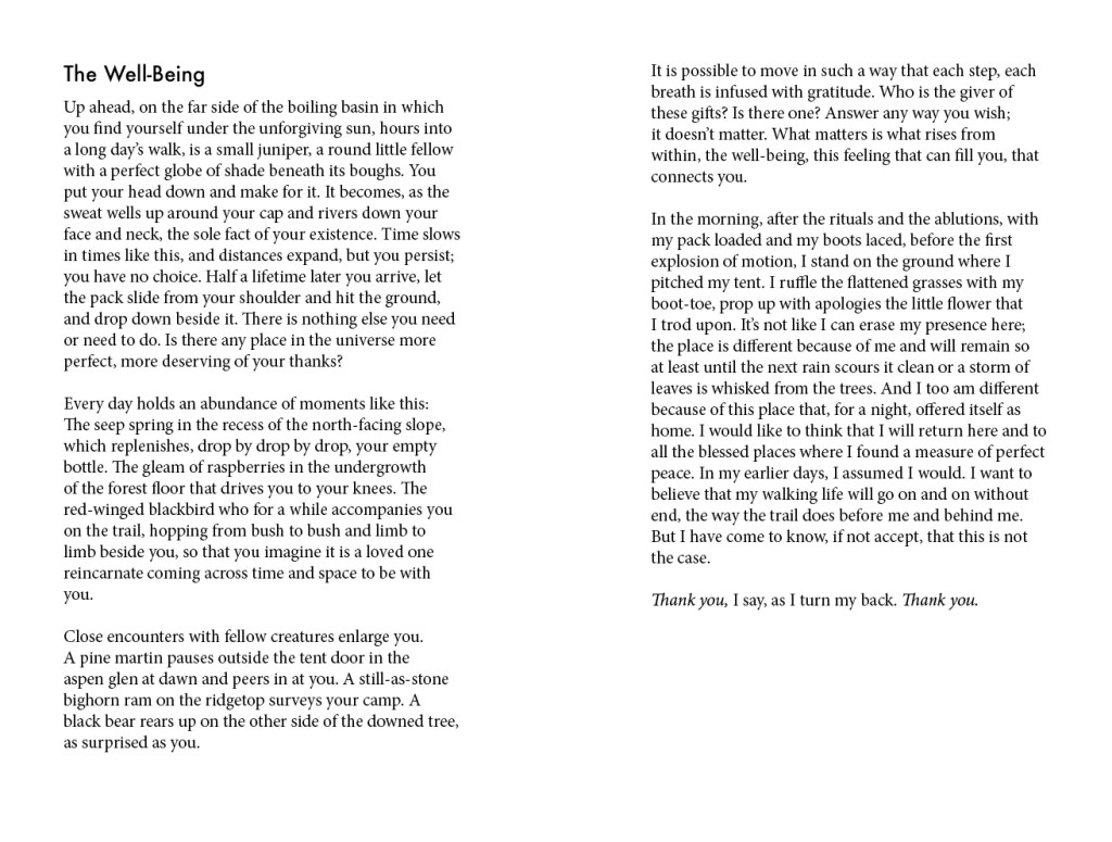 “The first thing to say is these are not my truths,” this book begins. “They are available to anyone who from time to time chooses to live and walk for a few days out of doors. I am just a guy who, since 1972, has been wandering around in wild places whenever I can with a pack on my back and a notebook and pen in my front left pocket.”